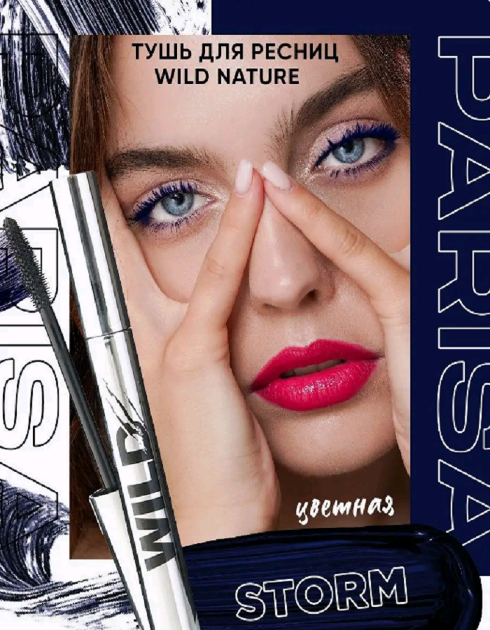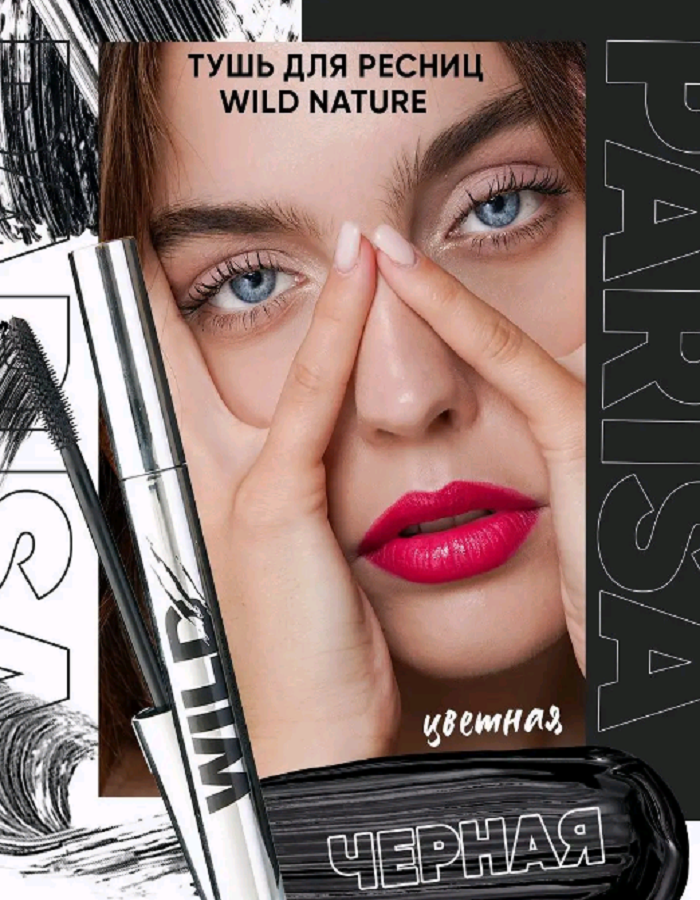 PARISA M-119 - WILD NATURE Тушь для ресниц цветная с силиконовой кистью №01 5 мл. crow (черная) (001888)
