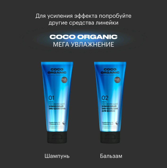 ORGANIC SHOP NATURALLY PROFESSIONAL - COCO ORGANIC Кокосовый био бальзам для волос "Мега увлажняющий" для нормальных и сухих волос 250 мл.