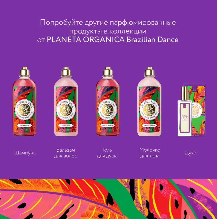 PLANETA ORGANICA BRAZILIAN DANCE - PERFUMED SHAMPOO Парфюмированный шампунь "Сила и рост" для всех типов волос 280 мл.