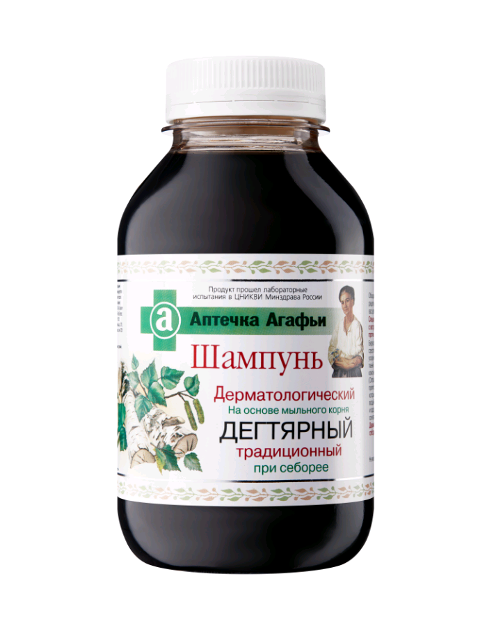 РЕЦЕПТЫ БАБУШКИ АГАФЬИ АПТЕЧКА АГАФЬИ - ДЕГТЯРНЫЙ Шампунь "Дерматологический" на основе мыльного корня традиционный при себорее 300 мл.