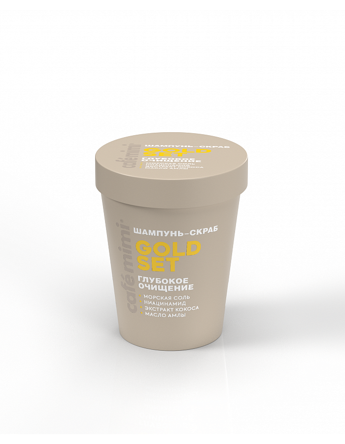 CAFE MIMI GOLD SET Шампунь-скраб "Глубокое очищение" с морской солью, ниацинамидом, экстрактом кокоса, маслом амлы 310 г.