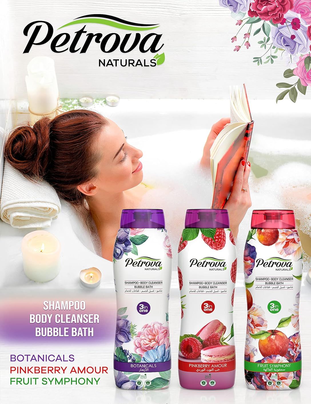 PETROVA NATURALS SHAMPOO - BODY CLEANSER - BUBBLE BATH - BOTANICALS 3 в 1 Шампунь, гель для душа и пена для ванн 500 мл.