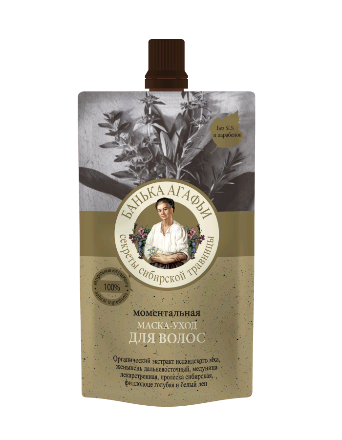 РЕЦЕПТЫ БАБУШКИ АГАФЬИ БАНЬКА АГАФЬИ Моментальная маска-уход для волос всех типов 100 мл. (дой-пак)