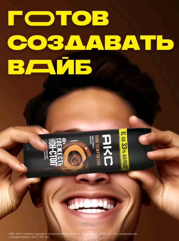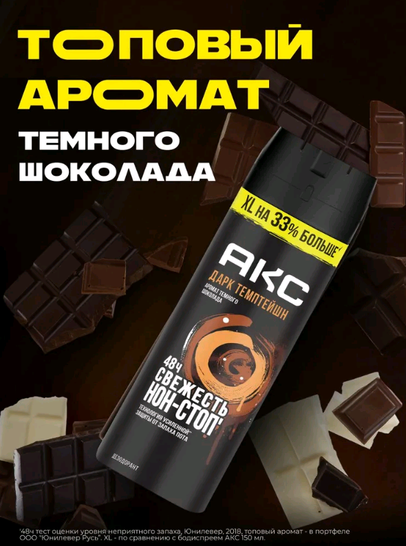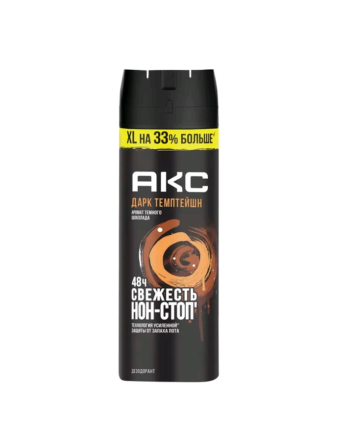 Дезодоранты Акс "Дарк Темптейшн" — комбо из нереального аромата и защиты от запаха в течение 48 часов. Крутой аромат дает +100500 к уверенности. А формула с цинком уничтожает бактерии, вызывающие неприятный запах.