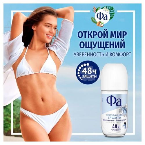 ФА (50) ПРОЗРАЧНАЯ ЗАЩИТА - АРОМАТ ЛАНДЫША + БЕЛОГО МУСКУСА Дезодорант-антиперспирант роликовый 50 мл.