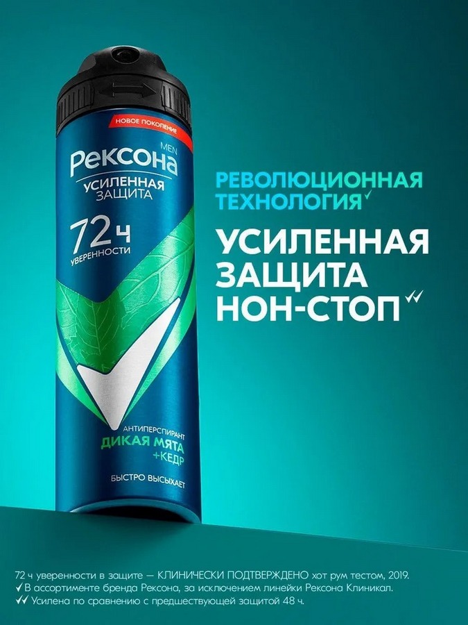Мужчине с активным образом жизни сложно сохранять уверенность в себе в течение всего дня. Но с антиперспирантом-аэрозолем Рексона Men Дикая Мята и Кедр это реально! Если ты находишься в поиске дерзкого мужского аромата, который порадует тебя надежной защитой от пота и запаха и подарит ощущение непрерывной свежести в течение всего дня — он создан специально для тебя!