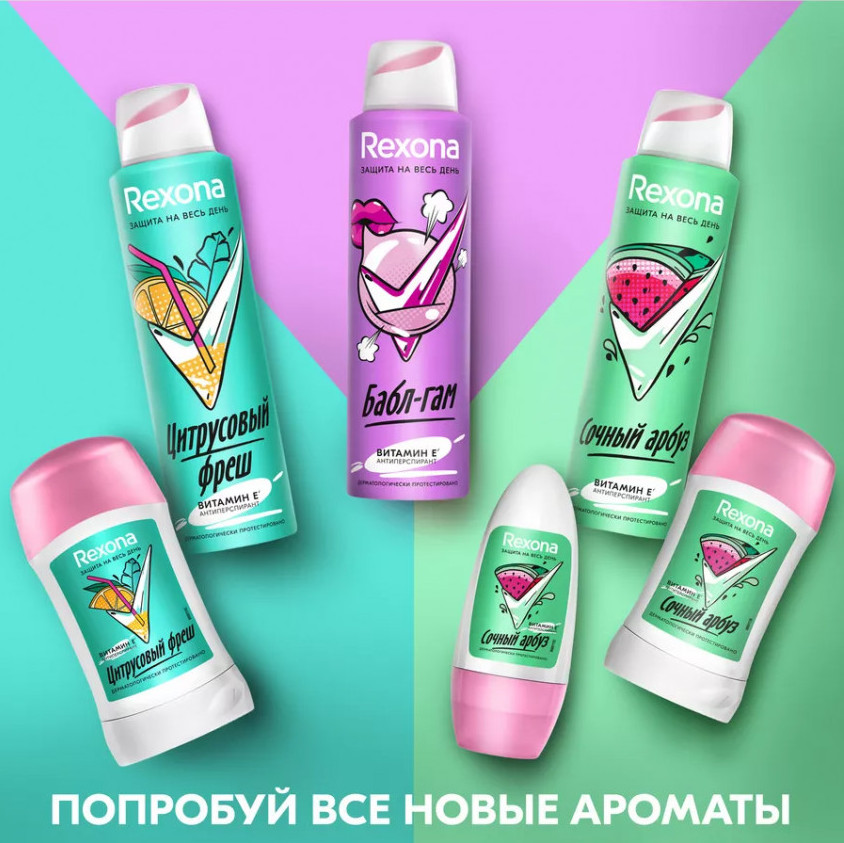 Переходи на территорию уверенности Rexona. Шариковый антиперспирант "Сочный арбуз" – твой надежный помощник в борьбе с потом и неприятным запахом. Это идеальный выбор для молодой и нежной кожи подмышек, а также эффективная защита до 48 часов от пота и неприятных запахов.