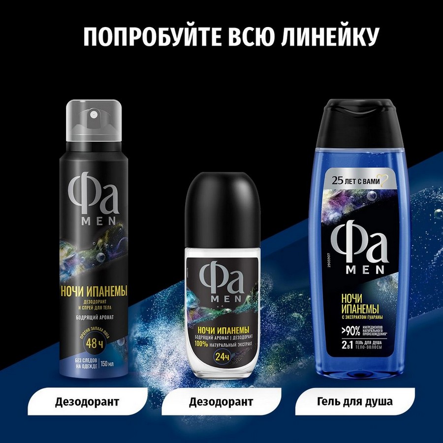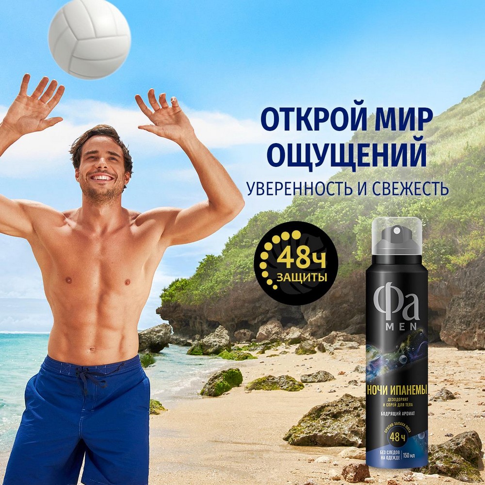 ФА (150) MEN - НОЧИ ИПАНЕМЫ Дезодорант и спрей для тела "Бодрящий аромат" 150 мл.