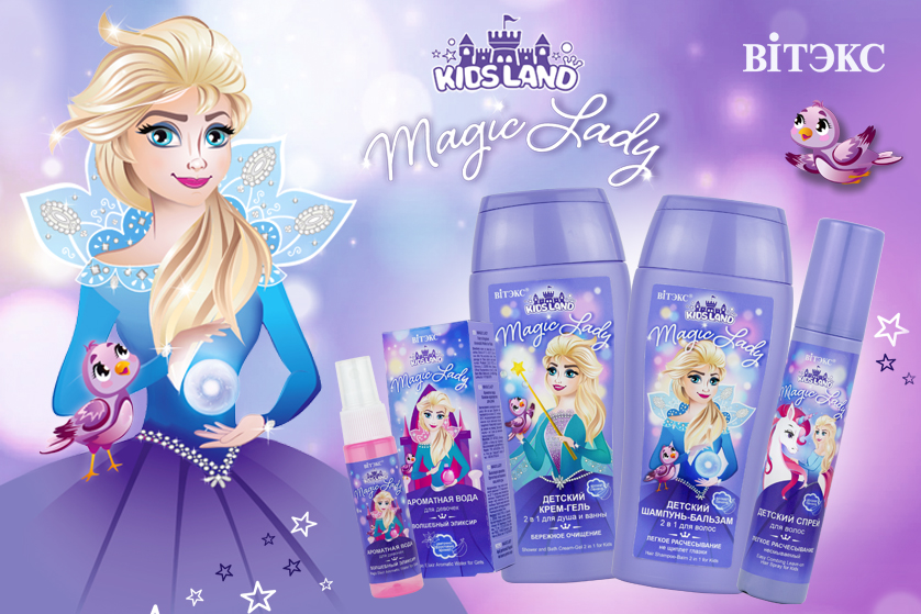 ВIТЭКС KIDSLAND - MAGIC LADY Детский крем-гель 2 в 1 для душа и ванны "Бережное очищение" 300 мл.