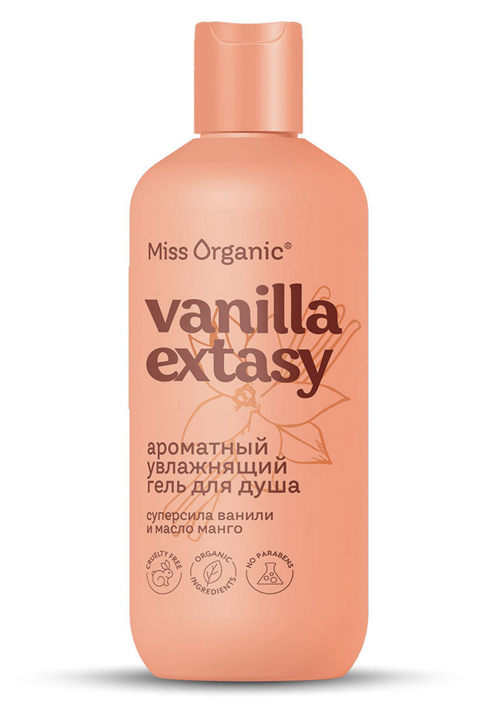 MISS ORGANIC VANILLA EXTASY Ароматный увлажняющий гель для душа "Суперсила ванили и масло манго" 290 мл.