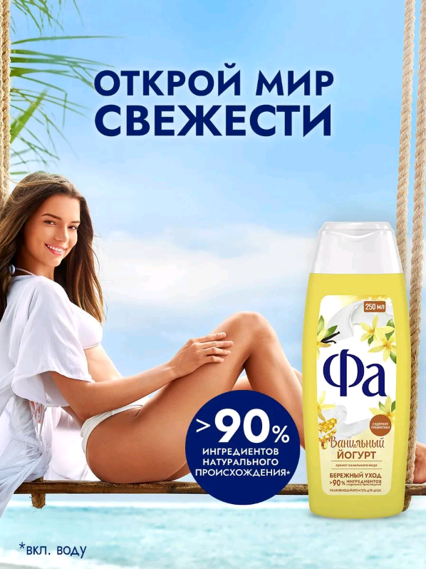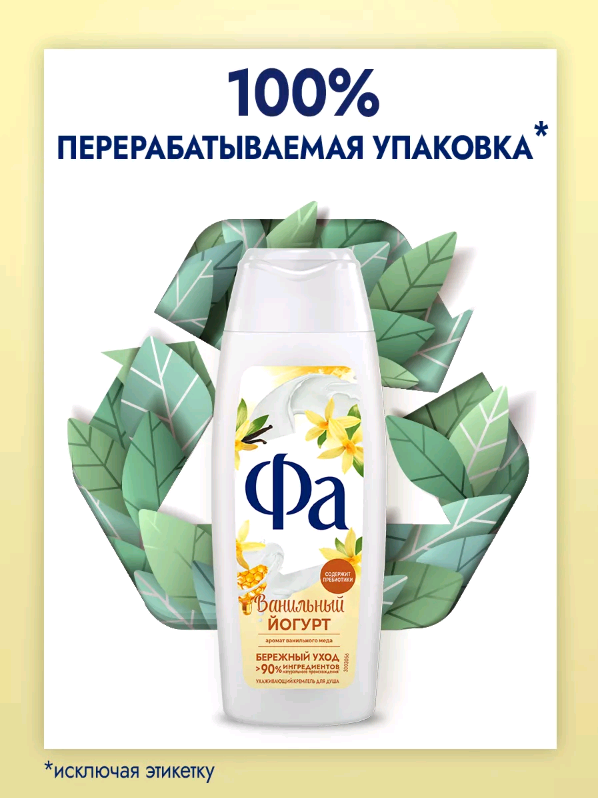 Женский гель для душа Фа "Ванильный йогурт" - вдохновляющий аромат и бережная к коже формула. Эта особенно лёгкая формула с протеинами йогурта помогает коже поддерживать естественный баланс влаги, одновременно защищая от пересыхания и создавая заметное ощущение мягкости и эластичности. Гель для душа объединяет мягкую заботу и свежесть. Мягкий аромат ванили и мёда пленяет чувства и дарит незабываемое удовольствие от принятия душа.