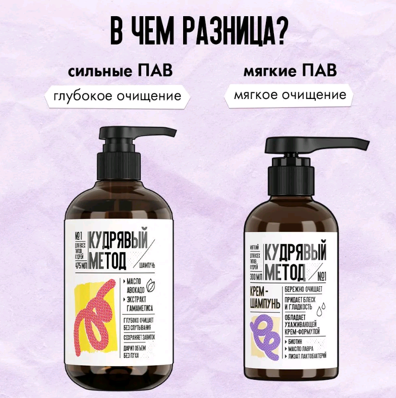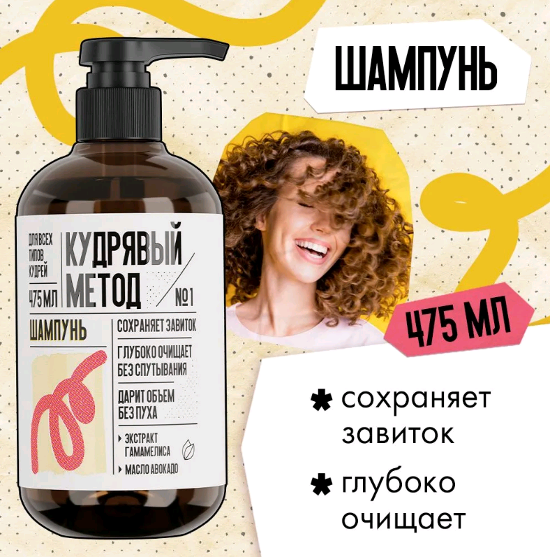 Профессиональная формула шампуня для кудрявых и вьющихся волос Кудрявый метод обогащена маслом авокадо и экстрактом гамамелиса, которые оказывают увлажняющее действие, имеют укрепляющий и восстанавливающий эффект. Подходит для удаления избыточного себума и средств стайлинга.