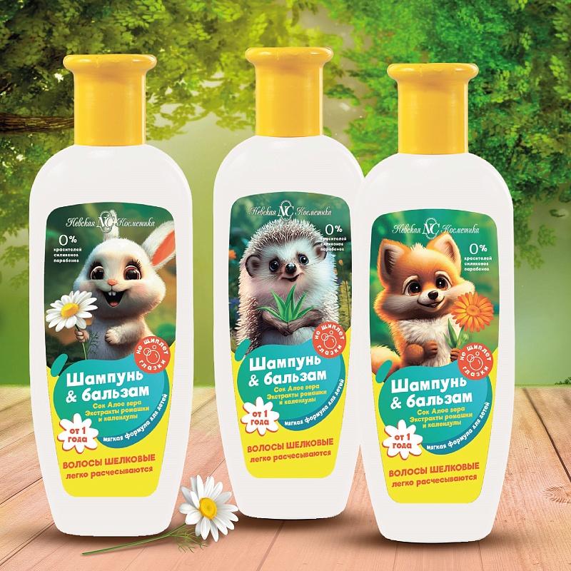 Детский шампунь & бальзам Невская косметика подходит для волос любой длины детей с 1 года, а также и взрослым.