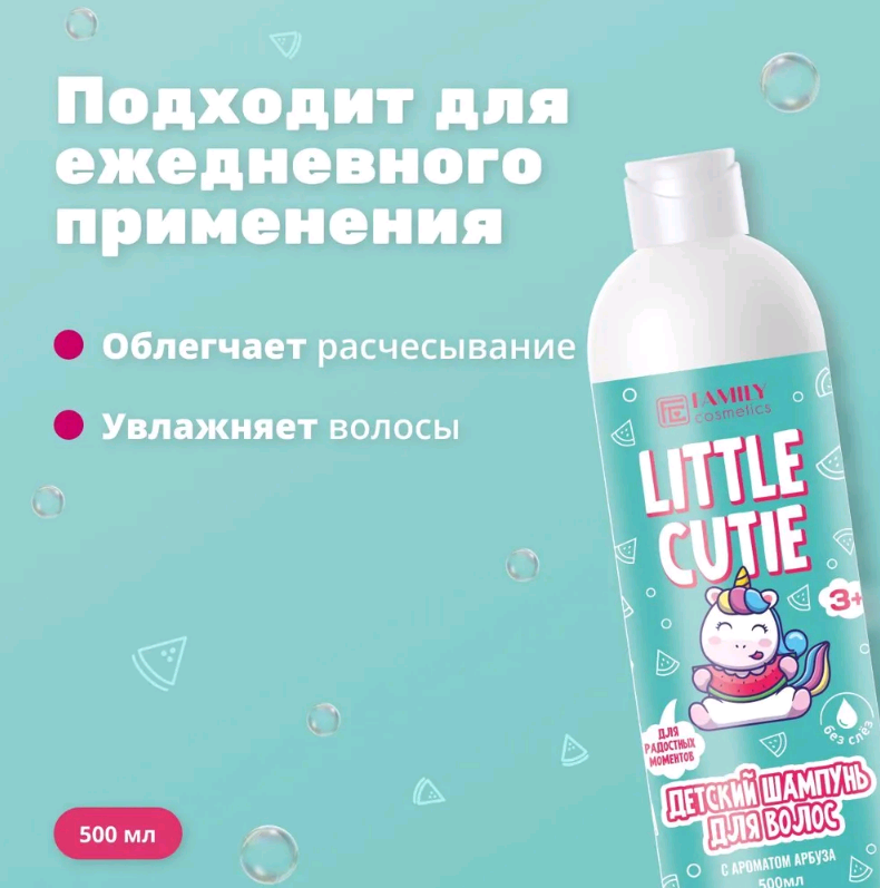 FAMILY COSMETICS LITTLE CUTIE Детский шампунь для волос "С ароматом арбуза" 3+ 500 мл.