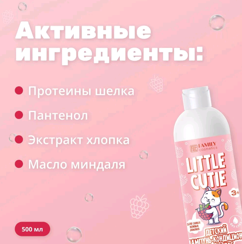 FAMILY COSMETICS LITTLE CUTIE Детский шампунь-кондиционер "С ароматом малины" 3+ 500 мл.