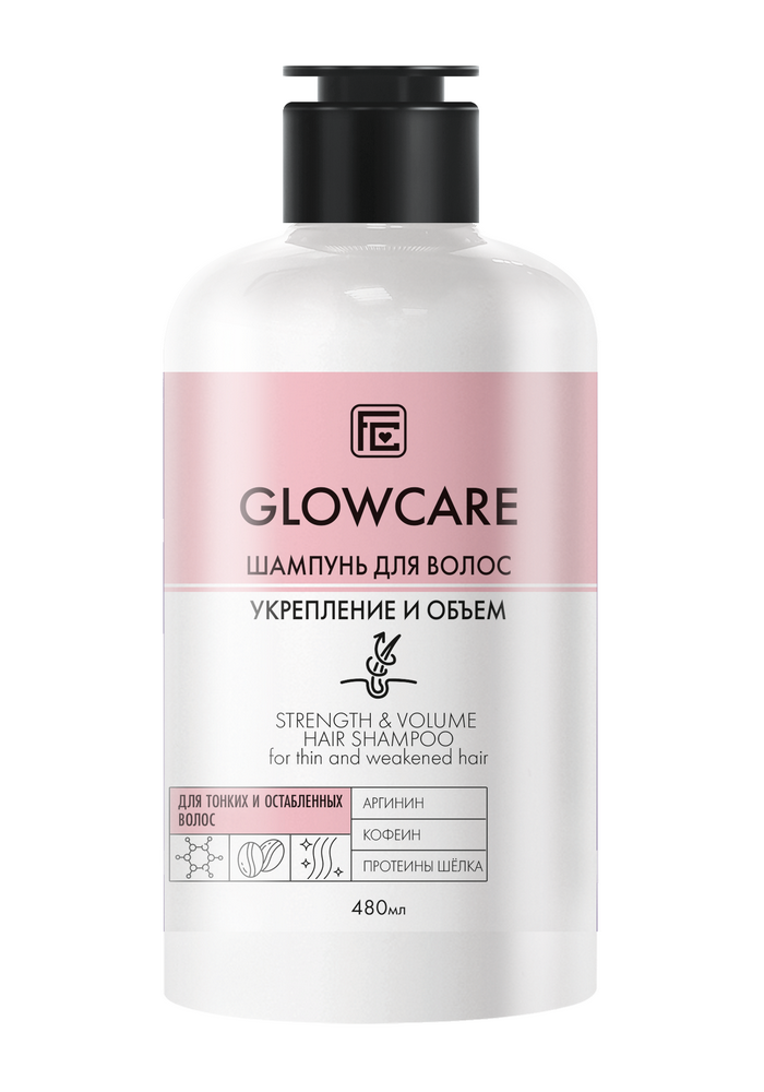 FAMILY COSMETICS GLOWCARE - УКРЕПЛЕНИЕ И ОБЪЕМ Шампунь "С аргинином, кофеином и протеинами шелка" для тонких и ослабленных волос 480 мл.