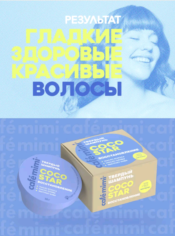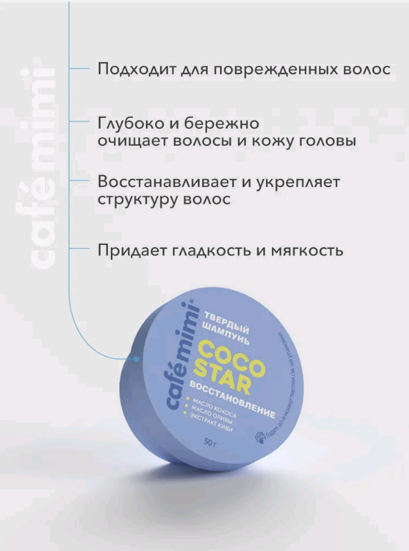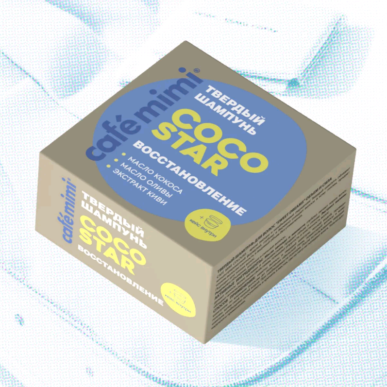 CAFE MIMI COCO STAR - ВОССТАНОВЛЕНИЕ Твердый шампунь "С маслом кокоса, оливы и экстрактом киви" для всех типов волос 50 г.