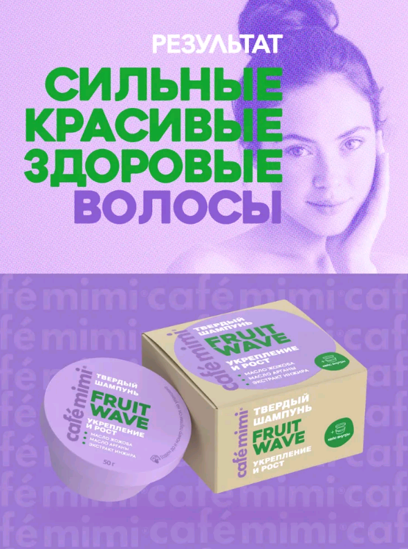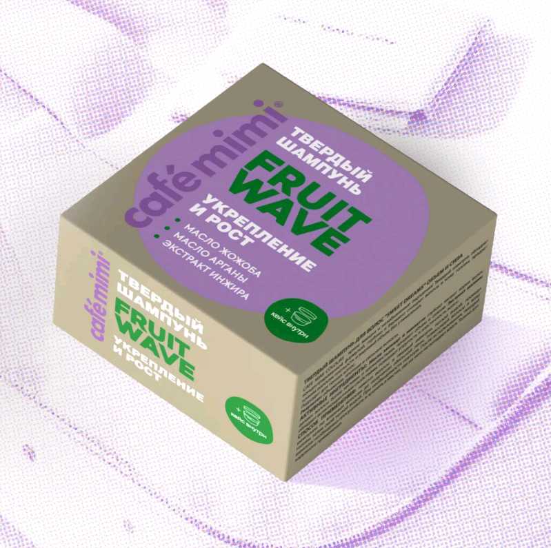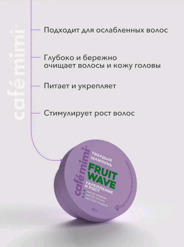 CAFE MIMI FRUIT WAVE - УКРЕПЛЕНИЕ И РОСТ Твердый шампунь "С маслом жожоба, арганы и экстрактом инжира" для всех типов волос 50 г.