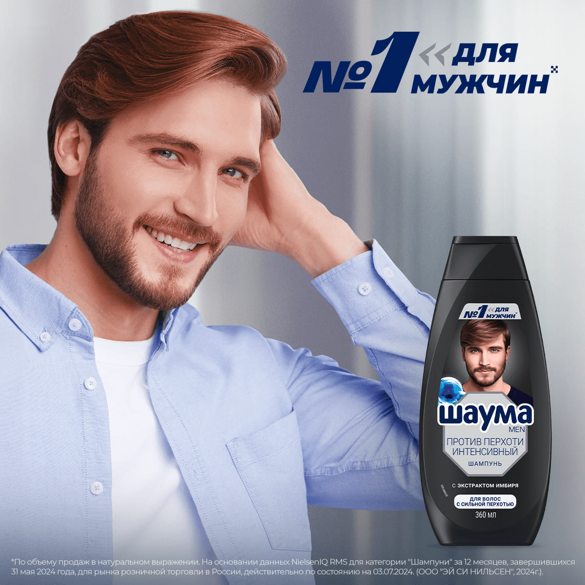 ШАУМА MEN - ПРОТИВ ПЕРХОТИ ИНТЕНСИВНЫЙ Шампунь "С экстрактом имбиря" для волос с сильной перхотью 360 мл.