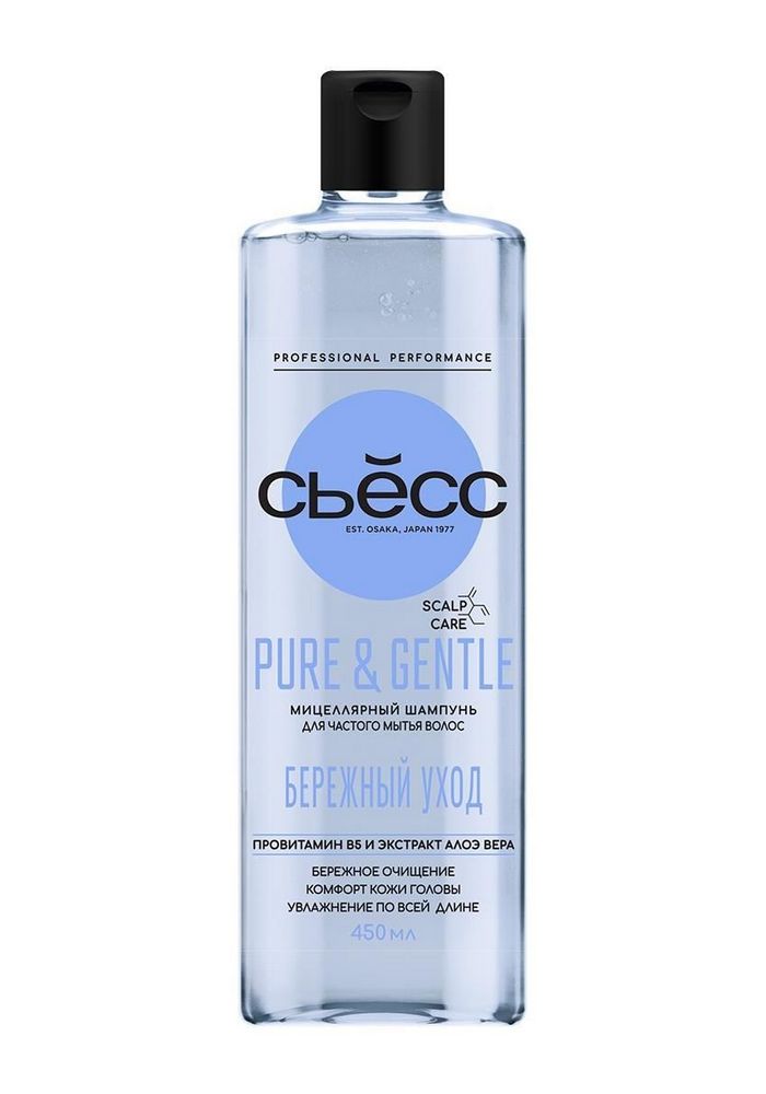 СЬЁСС SCALP CARE - PURE & GENTLE - БЕРЕЖНЫЙ УХОД Мицеллярный шампунь для частого мытья волос "С провитамином В5 и экстрактом алоэ вера" 450 мл.