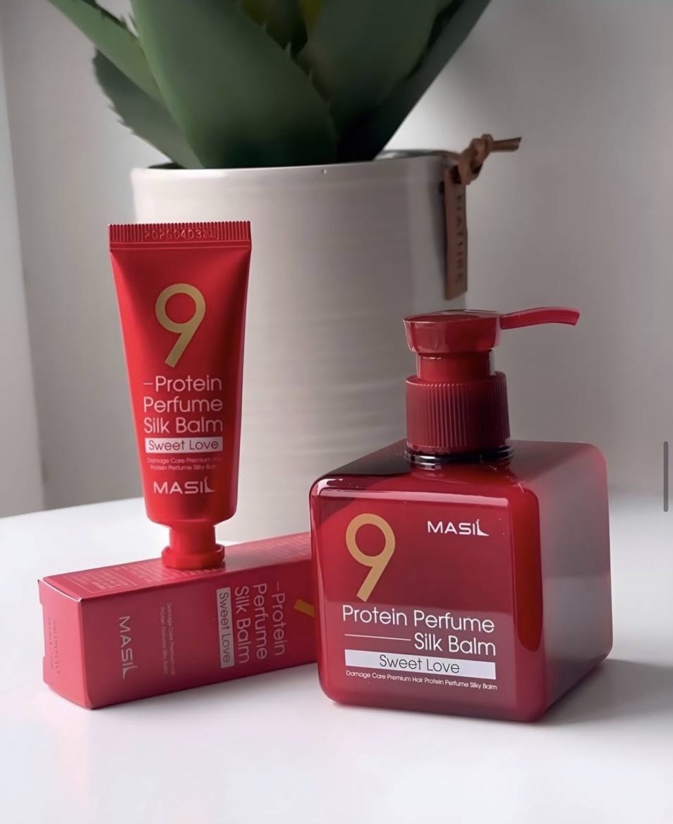 MASIL 9 PROTEIN PERFUME SILK BALM - SWEET LOVE Протеиновый парфюмированный несмываемый бальзам для поврежденных волос 180 мл.