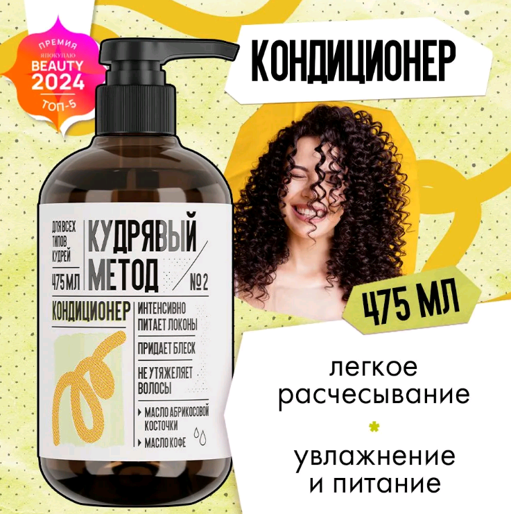 КУДРЯВЫЙ МЕТОД МАСЛО АБРИКОСОВОЙ КОСТОЧКИ И МАСЛО КОФЕ Кондиционер для всех типов кудрей 475 мл. (184130)