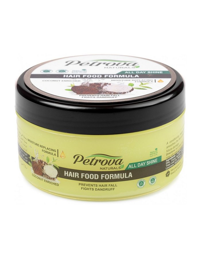 Уникальная формула маски для волос Petrova Hair Food Formula с маслом кокоса обладает кондиционирующим эффектом, предотвращает выпадение волос и борется с перхотью, разглаживает кутикулы волос, помогает защитить волосы от негативных факторов внешней среды. Без силиконов и парабенов.
