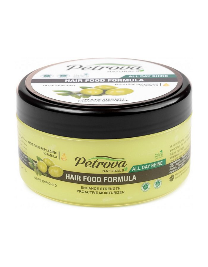 Уникальная формула маски для волос Petrova Hair Food Formula с оливковым маслом обладает кондиционирующим эффектом, обновляет и активно увлажняет волосы, увеличивает их прочность, разглаживает кутикулы и помогает защитить волосы от негативных факторов внешней среды. Без силиконов и парабенов.