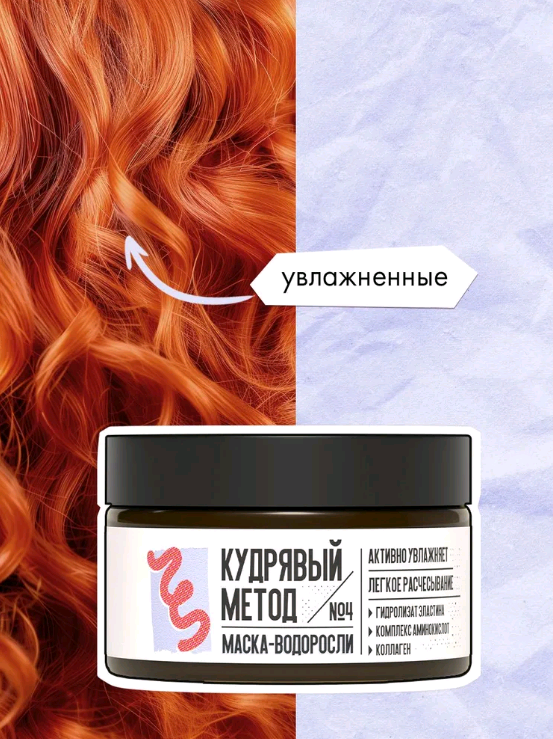 Маска-водоросли "Кудрявый метод" — уникальное средство для ухода за кудрявыми и вьющимися волосами, разработанное с учетом их потребности в интенсивном увлажнении и кондиционировании.