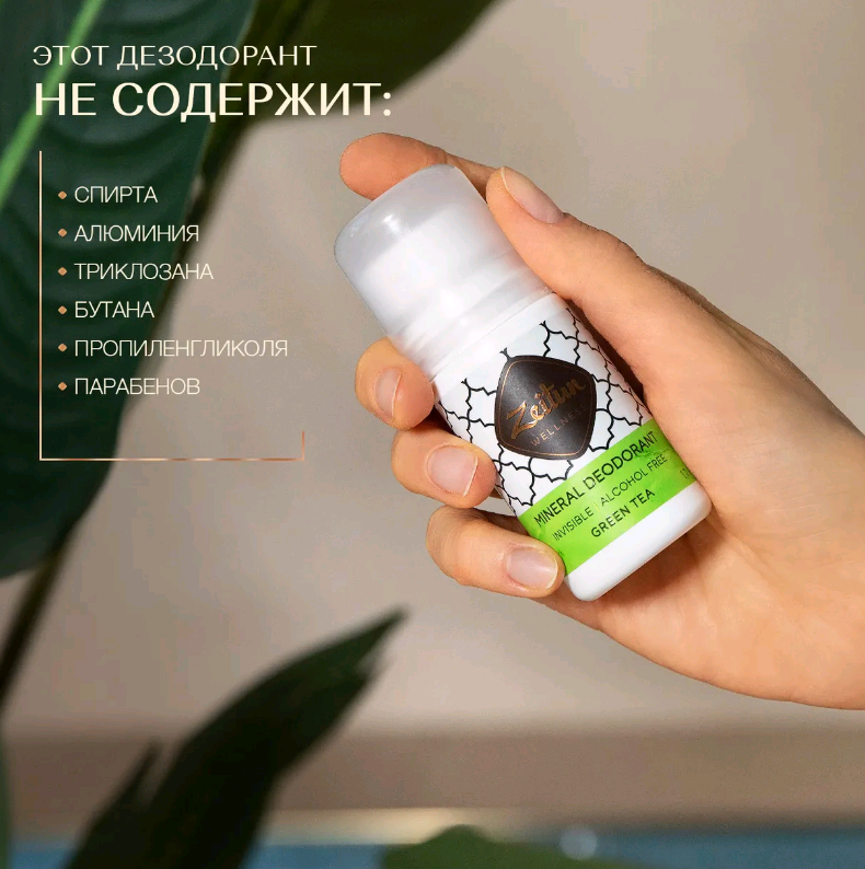 Минеральный шариковый дезодорант Zeitun "Зеленый чай" с новой улучшенной формулой с добавлением серебра вобрал в себя всю свежесть растительного аромата и эффективность природной защиты.