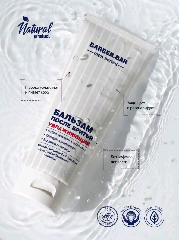 BARBER.BAR MEN SERIES Бальзам после бритья "Увлажняющий" с витаминами E и F, пантенолом, маслом зародышей пшеницы 100 мл.