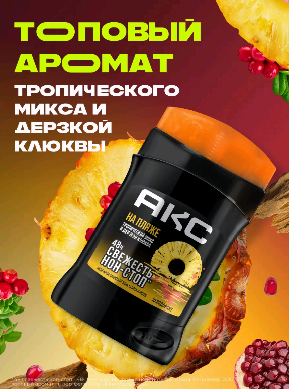 АКС men НА ПЛЯЖЕ Дезодорант-стик "Тропический микс и дерзкая клюква" 50 мл.