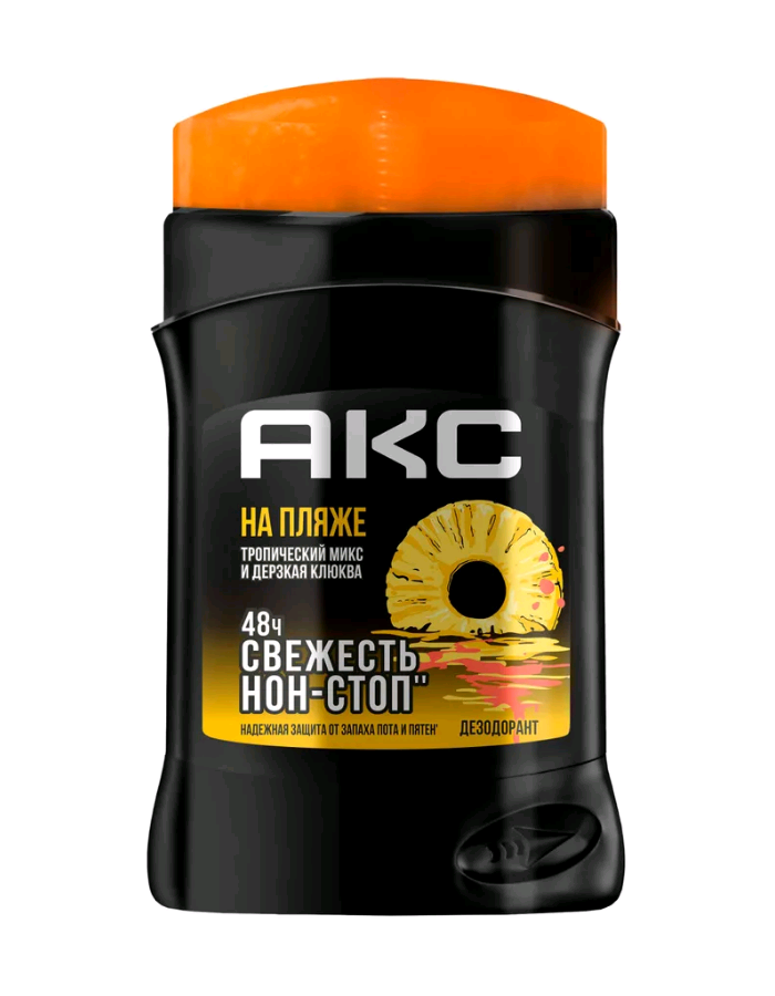 Основа аромата - тропический микс и дерзкая клюква. Невероятно притягательные ноты клюквы, сочного ананаса и яркого апельсина передали аромату Акс свой страстный головокружительный характер. Твердый дезодорант с антибактериальным эффектом станет изысканным дополнением к твоей коллекции средств личной гигиены.