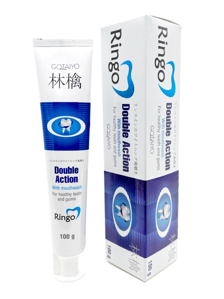 Японская зубная паста Gotaiyo Ringo Double Action с ополаскивателем 2 в 1 решает сразу несколько задач: отбеливает эмаль и борется с налетом в труднодоступных местах, повышая иммунитет полости рта. Современные щадящие абразивные компоненты нежно и бережно полируют зубную поверхность.