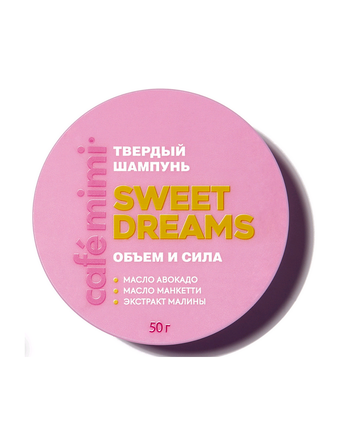 CAFE MIMI SWEET DREAMS - ОБЪЕМ И СИЛА Твердый шампунь "С маслом авокадо, манкетти и экстрактом малины" для всех типов волос 50 г.