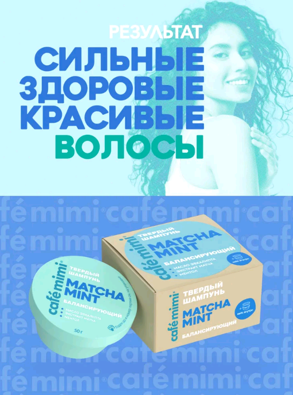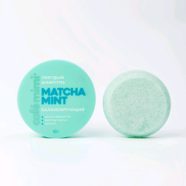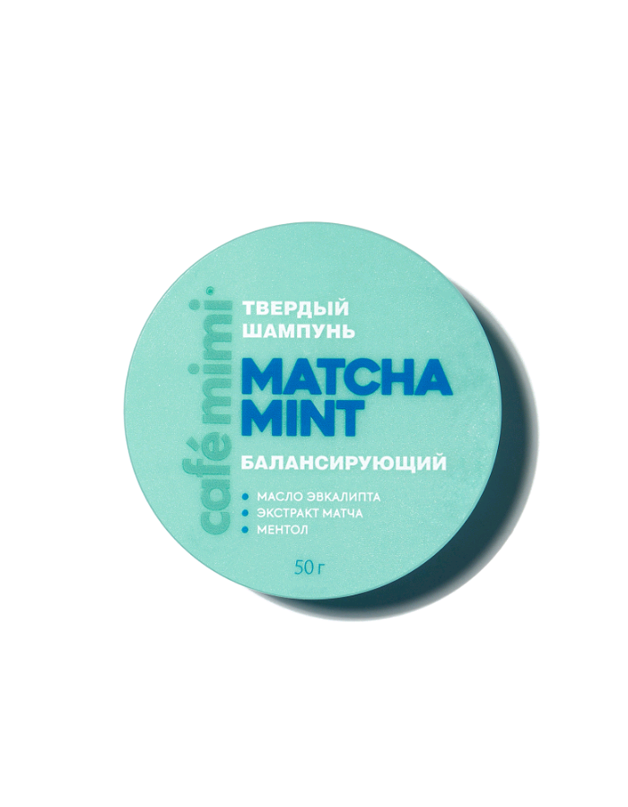 CAFE MIMI MATCHA MINT - БАЛАНСИРУЮЩИЙ Твердый шампунь "С маслом эвкалипта, экстрактом матча и ментолом" для всех типов волос 50 г.