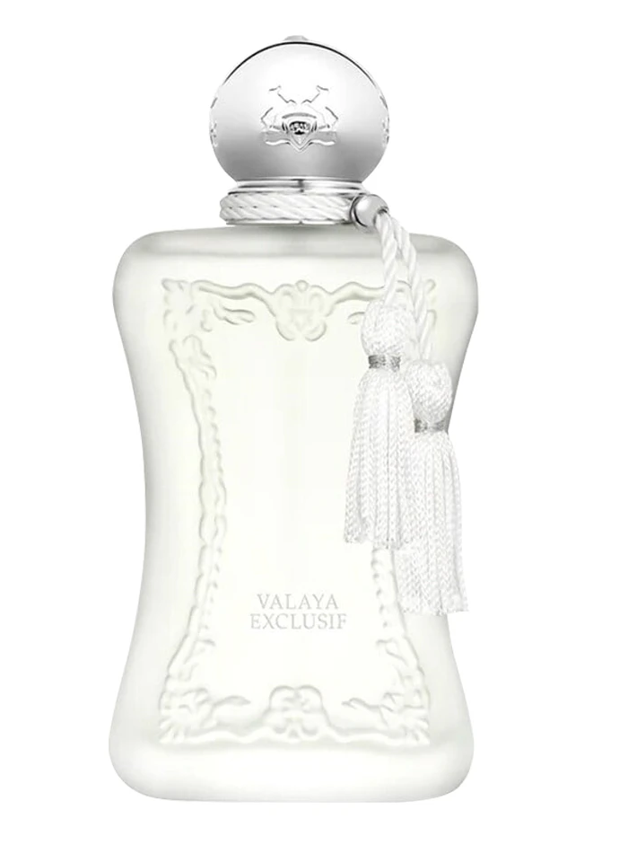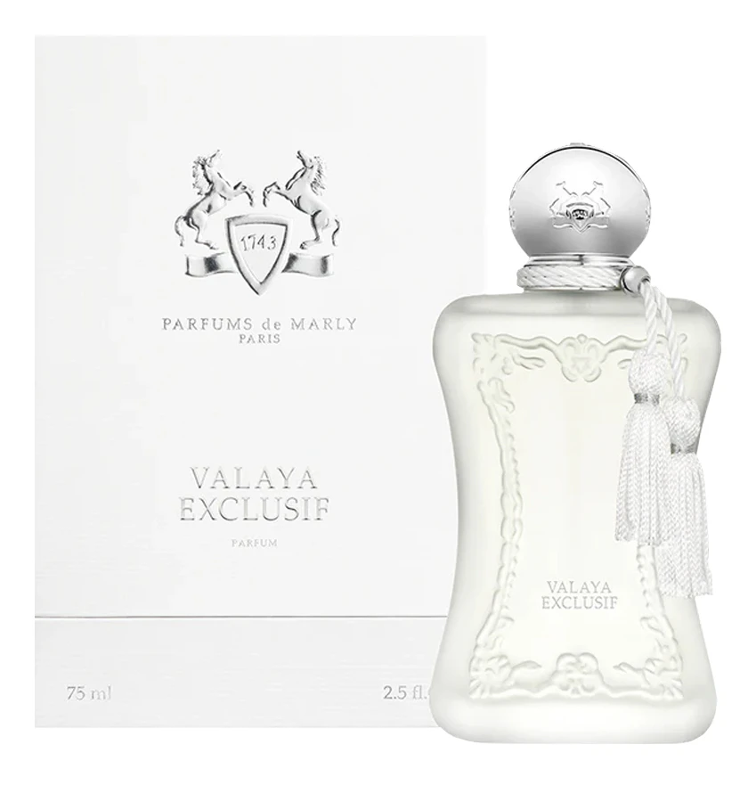 Parfums de Marly Valaya Exclusif — цветочно-древесный женский аромат от Parfums de Marly, вдохновленный чувственностью и изяществом французской придворной моды конца XVIII века. Эта эпоха, характеризующаяся роскошными слоями ткани и восхитительным взаимодействием прозрачности и непрозрачности, отражена не только в композиции аромата, но и в белом матовом флаконе, покрытом нежными цветочными завитками, чья элегантная внешняя часть отражает суть заключенного внутри аромата.