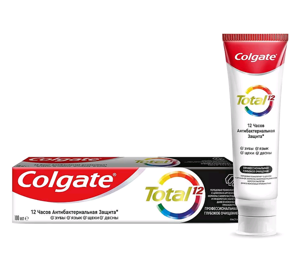 Для обеспечения здоровья всей полости рта необходима комплексная защита, а не только забота о зубах. Поэтому новый Colgate Total 12 Профессиональная Глубокое Очищение проактивно борется с бактериями не только на зубах, но и на языке, щеках и деснах в течение 12 часов, обеспечивая здоровье всей полости рта.