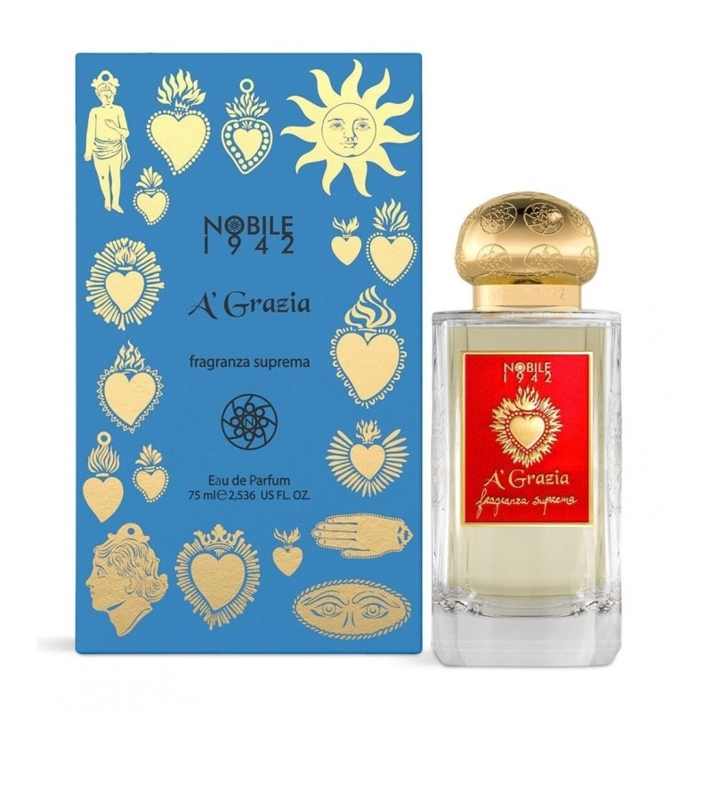 Парфюмерный бренд из Италии Nobile 1942 имеет богатую историю, которая нашла отражение даже в его названии. Основателем компании по производству мыла, помад, средств гигиены и качественных ароматов был Умберто Нобиле. В 1942 году он открыл свой первый магазин U. Nobile, который пользовался невероятным успехом. Продолжателем дела стал сын Умберто, расширивший производство парфюмерной продукции. Семейный бизнес получил второе дыхание благодаря Массимо Нобиле, внуку основателя фирмы, который вместе с женой Стефанией Джаннино в 2004 году зарегистрировал торговую марку Nobile 1942 и представил публике первые духи, изданные брендом в XXI столетии. На сегодня в парфюмерном кейсе компании насчитывается более 65 превосходных ароматов. Парфюмерная вода Nobile 1942 A' Grazia выпущена в 2023 году. Автором новинки является самобытный и популярный парфюмер Мигель Матос. Композиция сверкает многими гранями, среди которых проступают сладкие, свежие, цветочные, кожаные, древесные и пряные оттенки. Это аромат-шедевр, который не имеет четкой гендерной направленности. В его начале слышны аккорды освежающего бергамота, фруктовой даваны, пряного зеленого кумина и розового оксида. В сердце ольфакторной пирамиды роза продолжает свою мелодию, которую подхватывают лесные переливы нагармоты и сладкие тона шоколада. В базовых нотах звучат аккорды спелой малины, пряной ванили, мягкой кожи, благородного сандала, теплой амбры и чувственного мускуса.