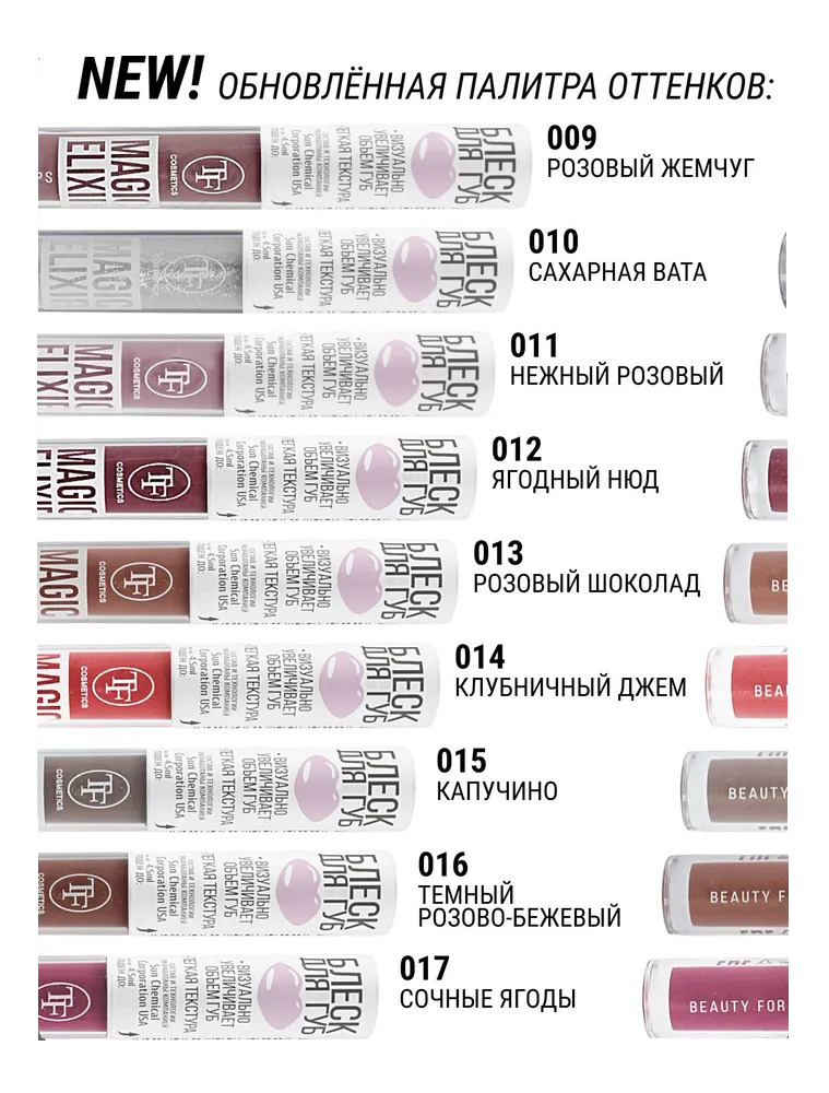 TF Cosmetics предлагает широкую палитру оттенков блеска, что позволяет каждой женщине подобрать идеальный вариант для своего образа. Блеск идеально подойдет как для дневного, так и для вечернего макияжа. Удобная кисточка облегчает нанесение блеска и позволяет контролировать количество продукта.