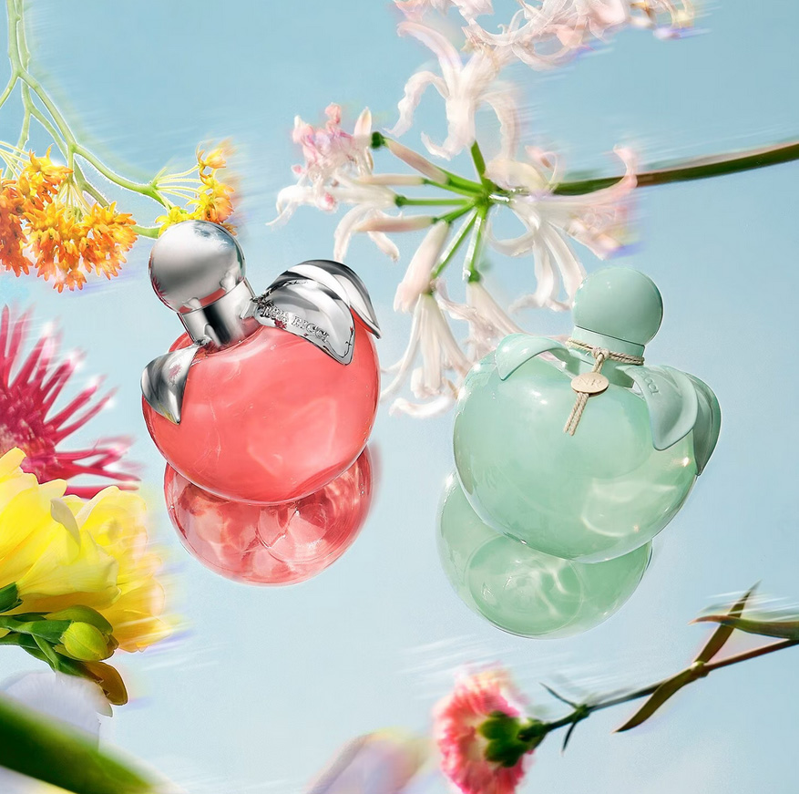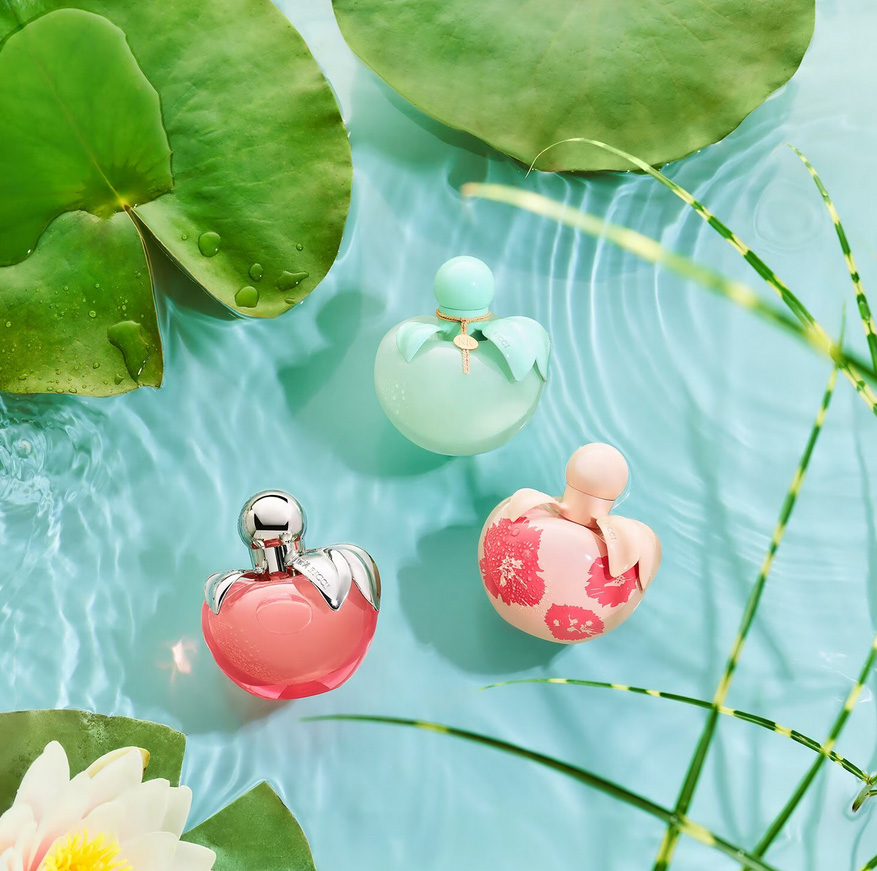 Для Nina Ricci Nina Nature бренд перевыпустил свой культовый яблочный флакон в благородной мятной версии. Нежные пастельные тона напоминают свежесорванное яблоко в утренней росе. Коричневый шнур, завязанный вокруг горлышка и зафиксированный медальоном с монограммой NR, придает флакону естественный вид.