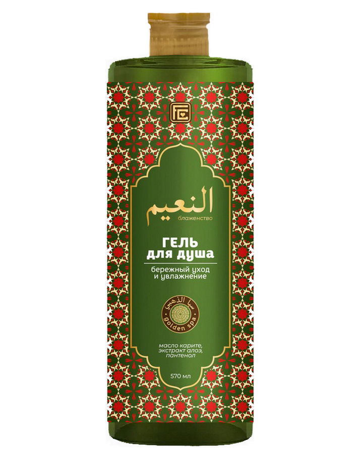 FAMILY COSMETICS GOLDEN SPA - БЛАЖЕНСТВО Гель для душа "Бережный уход и увлажнение" с маслом карите, экстрактом алоэ, пантенолом 570 мл.