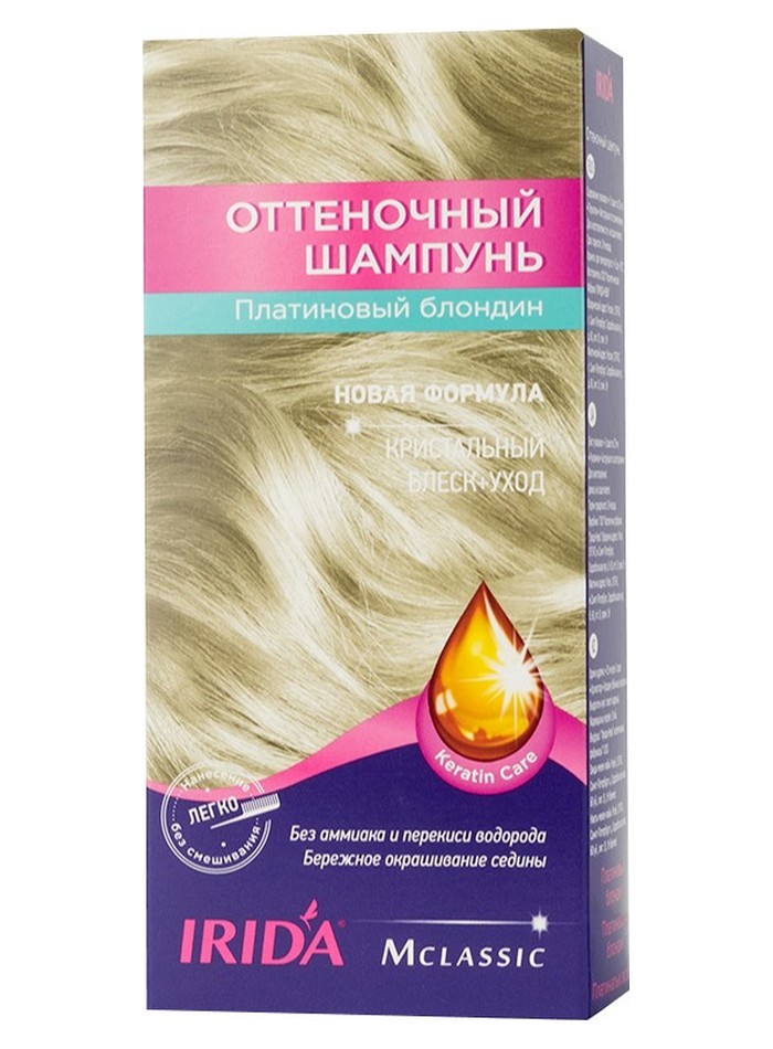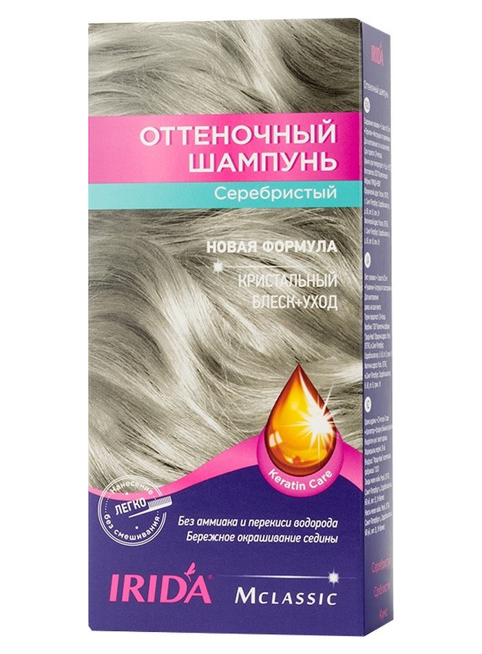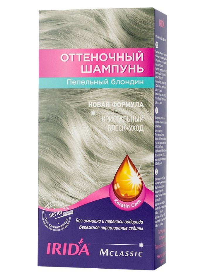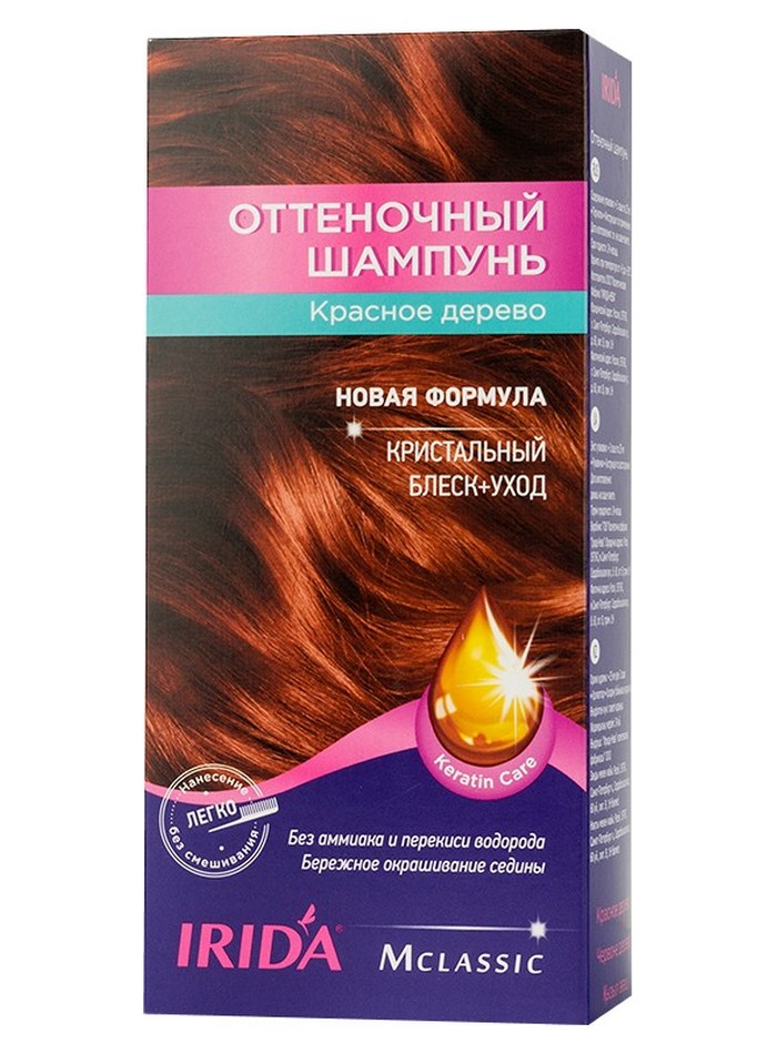 Оттеночный шампунь Irida MClassic равномерно окрашивает волосы от корней до самых кончиков, превосходно закрашивает седину. Защищает волосы при сушке феном, обеспечивает длительную стойкость цвета. Полученный оттенок выдерживает 12 - 15 процедур мытья головы. После окрашивания волосы приобретают роскошный и стойкий цвет, соблазнительный блеск, ухоженный вид и здоровое сияние.