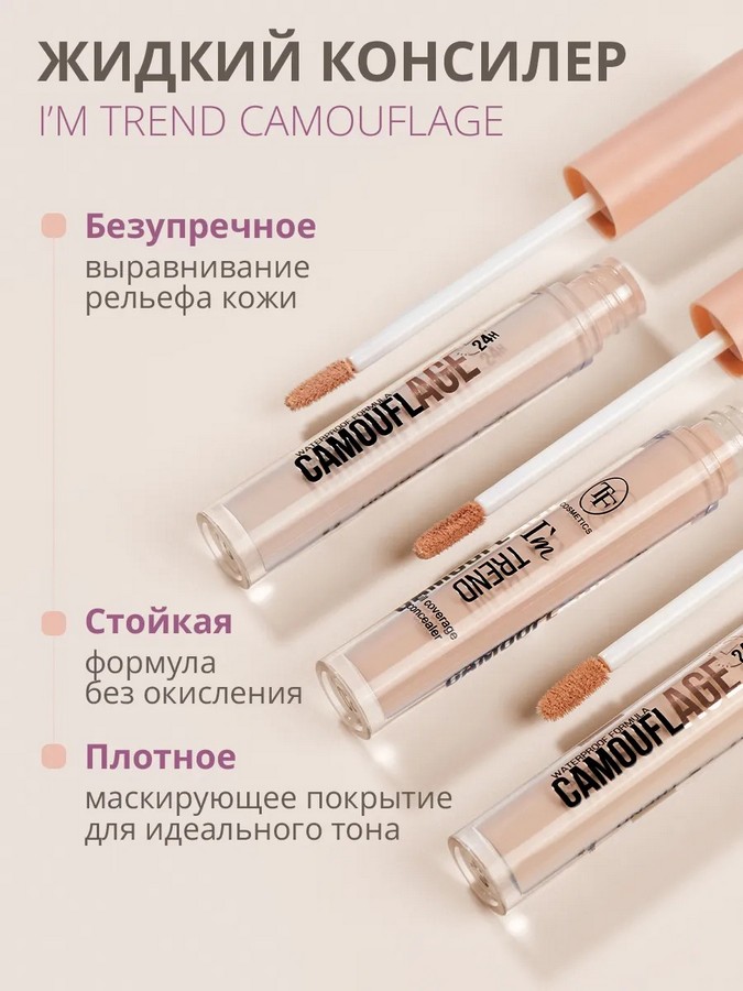 Представляем вашему вниманию жидкий консилер Camouflage линейки I'm Trend - настоящая бьюти-бомба для вашего макияжа! Этот кремовый корректор станет вашим надежным помощником в создании идеального образа. Он разработан с учетом всех потребностей современной красавицы и способен быстро и эффективно скрыть все несовершенства на коже.