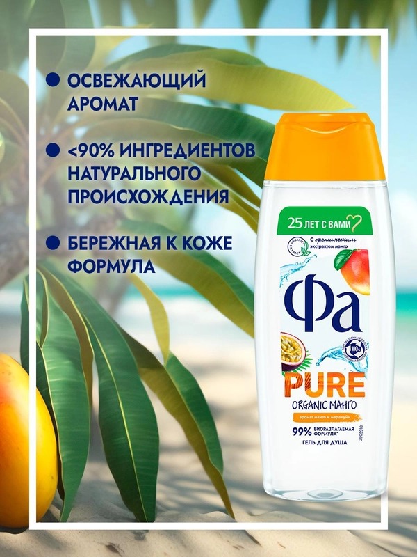 ФА PURE - ORGANIC МАНГО Гель для душа "Аромат манго и маракуйи" 250 мл.
