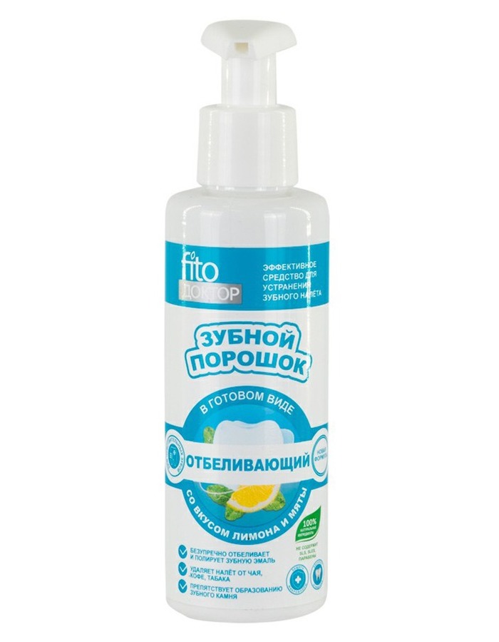 FITOКОСМЕТИК FITO ДОКТОР - ОТБЕЛИВАЮЩИЙ Зубной порошок в готовом виде "Со вкусом лимона и мяты" 150 мл.