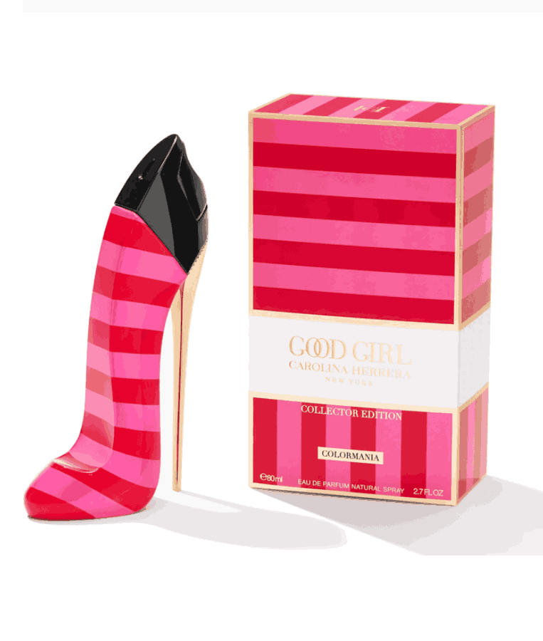 Одним из самых узнаваемых аспектов парфюмерной линии Good Girl является ее культовый флакон в форме туфельки на шпильке, который служит символом женской силы. В издании Colormania этот легендарный дизайн преображается яркими красными и розовыми полосами, представляющими приверженность Carolina Herrera к радости, цвету и моде. Полированный золотой каблук добавляет нотку роскоши, делая этот флакон ярким дополнением к любой коллекции.