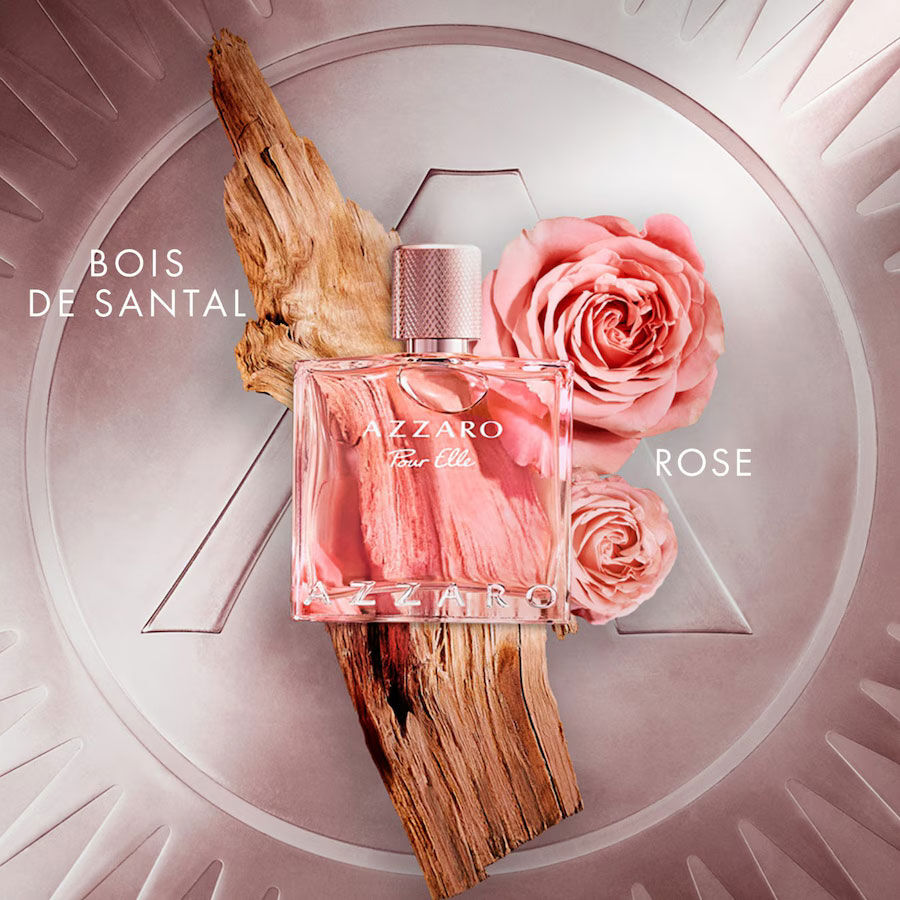 Старт парфюма наполнен искристой свежестью лимона, напоминающей об итальянском солнце, ласкающем кожу. В центре ольфакторной пирамиды Azzaro Pour Elle властвует аккорд розы, окутывающий элегантным и чарующим облаком. Для базы был выбран сандал, переливающийся сливочными и древесными оттенками.