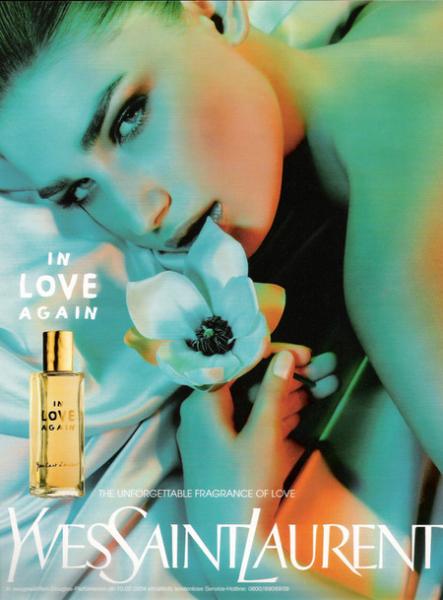 Эликсир вечной любви, заключенный в хрупкий стеклянный флакон, - вы и только вы сможете оценить его по достоинству. Ведь вы снова влюблены... Вас переполняют сильные эмоции, ваша душа замирает от счастливых предвкушений, вас бросает в сладкую дрожь, когда вы слышите любимый голос, вас окутывает нежная аура влюбленности. In Love Again...Настоящий гимн женственности, самовоплощение женской любви и женского счастья, И перед этим роскошным подарком просто невозможно устоять - ведь истинная любовь, как известно, вечна! Этот аромат, созданный в 1998 году к 40-летию начала деятельности Дома Yves Saint Laurent, снова завоевывает женские сердца. Ведь в 2004 году был очередной юбилей - 40-летие с момента создания первого аромата марки.