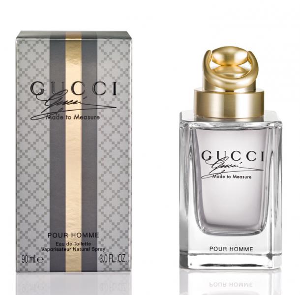 Gucci запускает новый аромат для мужчин - Made to Measure - осенью 2013 года. Новинка создана для "искушенных и изысканных" мужчин, которые "привыкли ко всему самому лучшему". Мужской аромат Made to Measure является 'партнером' женского издания Gucci Premiere 2012 года Композиция заявлена как восточно-пряная, "идеально сидящая", вдохновленная внешним видом сшитого на заказ, вручную, дорого костюма. "Made to Measure - аромат от-кутюр, заключенный в роскошный стеклянный флакон, тяжелый и статный... Жемчужно-серый цвет напоминает о пуговицах на дорогом костюме или рубашке. Как на любом 'сделанном на заказ' предмете гардероба, на флаконе Made to Measure стоит подпись основателя дома, Guccio Gucci. Изготовление каждого флакона заканчивается ручной полировкой. Колпачок из золотистого металла имеет фирменную форму дома Gucci - horsebit (удила). Внешняя коробка украшена узором Gucci’s Diamante, который впервые был использован в 1930-х и отражает наследие дома Gucci. На графитовом фоне коробки выделяется полоса приглушенного золотисто-бронзового цвета - еще один фирменный элемент Gucci."